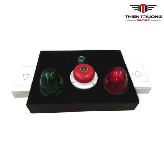 – Bộ sản phẩm bao gồm: 1 chuông + 2 đèn + 2 hộp bấm cho 2 đội